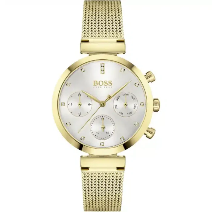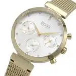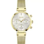 ساعة هوجو بوس للنساء أصلية موديل (كلاسيك سبورت) Classic Sport 1502552 بلون فضي و استيك معدن بلون ذهبي