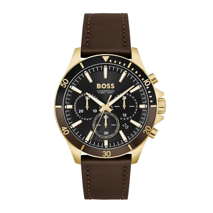 ساعة هوغو بوس للرجال اصلية موديل (توربير ) Troper  1514100 بلون اسود واستيك جلد طبيعي لون بني