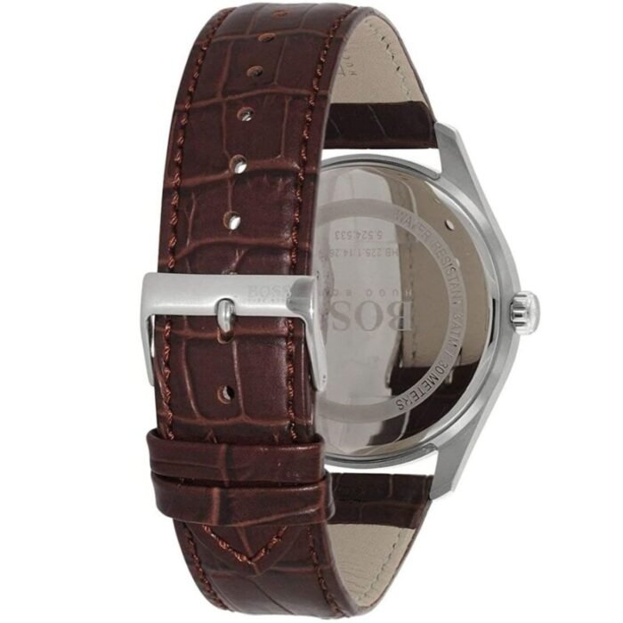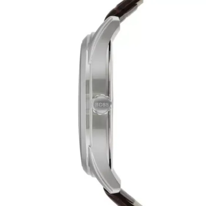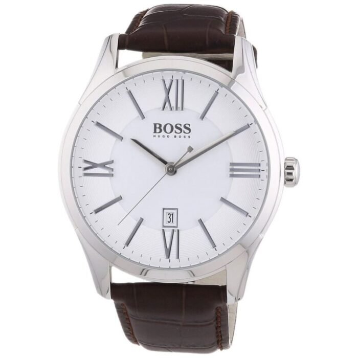 ساعة هوغو بوس للرجال اصلية موديل (امباسادور) Ambassador 1513021 بلون ابيض واستيك جلد لون بني
