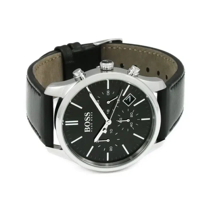 ساعة هوغو بوس للرجال اصلية موديل (تايم ون) Time One 1513430 بلون اسود واستيك جلد لون اسود