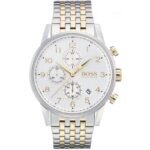 ساعة هوغو بوس للرجال اصلية موديل (نافيجيتور) Navigator 1513499 بلون ابيض واستيك معدن لون فضي و ذهبي