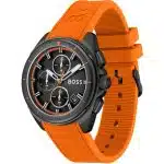 ساعة هوغو بوس للرجال اصلية موديل 1513957 بلون اسود واستيك رابر لون برتقالي