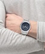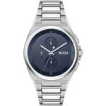 ساعة هوجو بوس للرجال أصلية موديل 1514048 (ستير) Steer بلون ازرق و استيك ستنلس ستيل بلون فضي