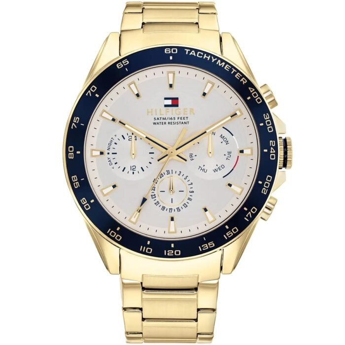 ساعة تومي هيلفيغر Tommy Hilfiger رجالي أصلية موديل (أوين) 1791969 Owen بلون ابيض و استيك ستانلس ستيل بلون ذهبي