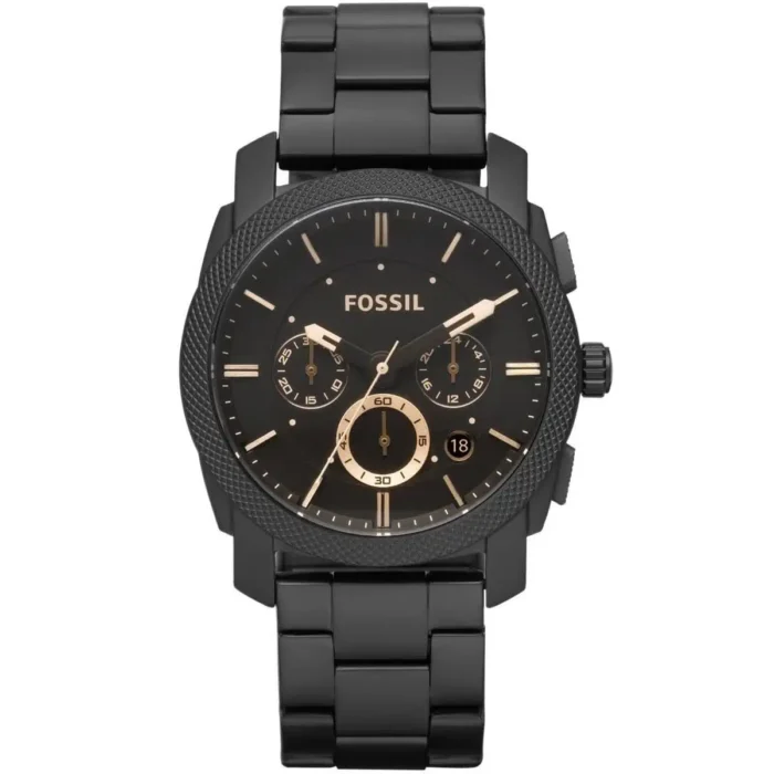 ساعة فوسيل للرجال اصلية موديل (ماشين) Machine FS4682 بلون اسود واستيك معدن بلون اسود