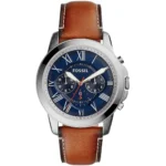 ساعة فوسيل للرجال اصلية موديل (جرانت) Grant FS5210 بلون ازرق واستيك جلد بلون بني