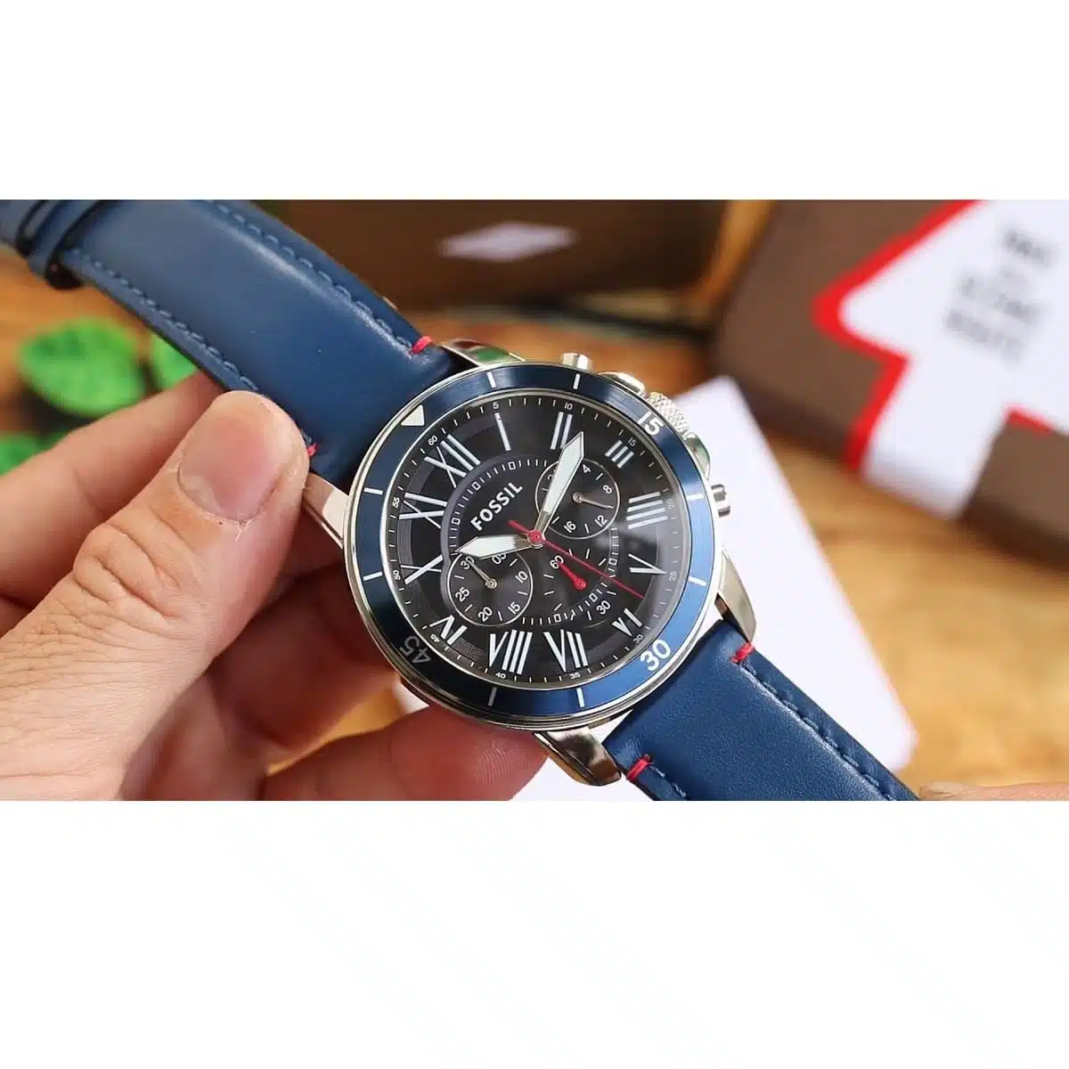 ساعة فوسيل للرجال اصلية موديل (جرانت سبورت) Grant Sport FS5373 بلون ازرق واستيك جلد بلون ازرق