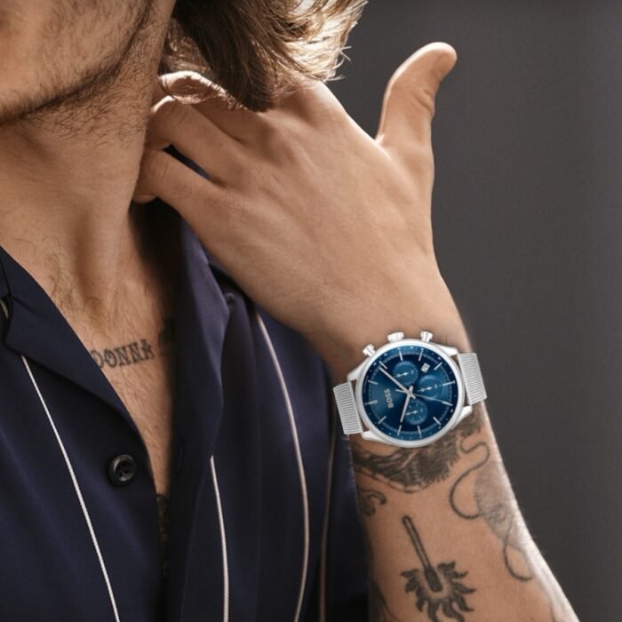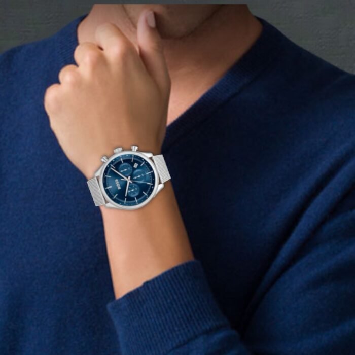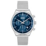 ساعة هوغو بوس للرجال اصلية موديل (جيرور) GREGOR 1514052 بلون ازرق واستيك معدن لون فضي