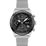 ساعة هوجو بوس للرجال أصلية موديل (بولت اديشن) Pilot Edition 1513886 بلون اسود و استيك معدن بلون اسود
