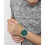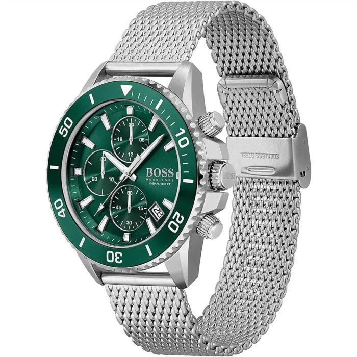 ساعة هوجو بوس للرجال أصلية موديل (ادميرال) admiral 1513905 بلون اخضر و استيك معدن بلون فضي