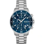ساعة هوجو بوس للرجال أصلية موديل (ادميرال) admiral 1513907 بلون ازرق و استيك معدن بلون فضي