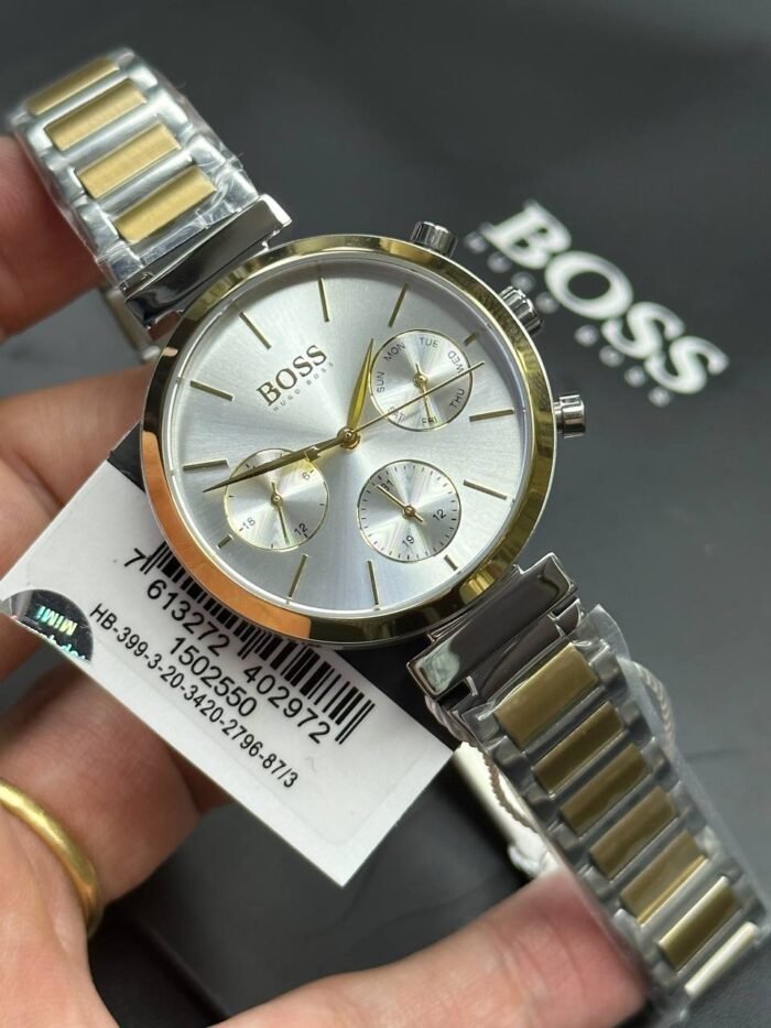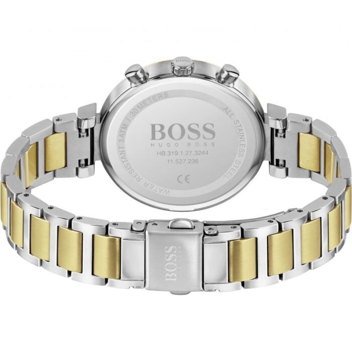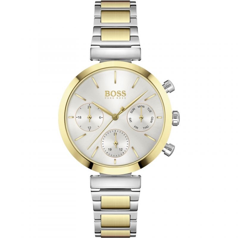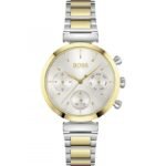 ساعة هوجو بوس للنساء أصلية موديل (فلاويس) Flawless 1502550 بلون فضي و استيك معدن بلون ذهبي ف فضي