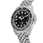 The Rolex GMT-Master for men features a classic black dial, offering clear readability and timeless style. Its sturdy build ensures durability, making it a practical and elegant choice for everyday wear.